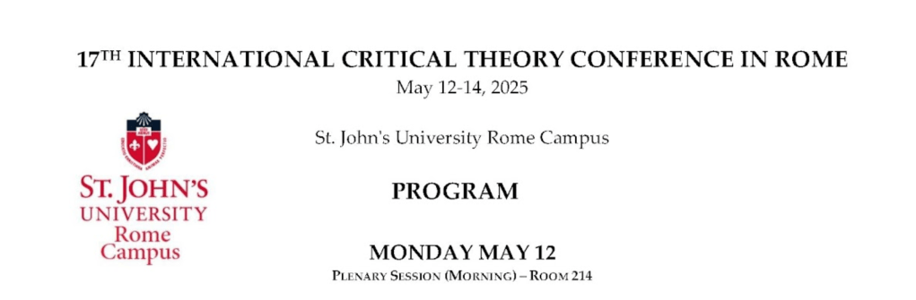 Presentation at the 17th International Critical Theory Conference in Rome